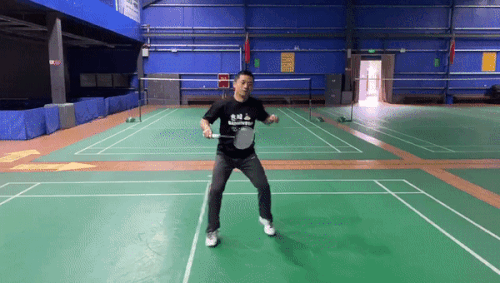 解说:在回动的过程中建议使用垫步,双脚几乎是贴着地往回移动,这种情况下由于你的双脚随时都在地面上,是可以随时蹬地启动的,而如果采用跳跃式步法,跳起来的这一下就是潜在风险!