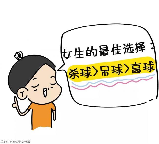 杀球是最佳选择,杀球可以进攻下压,给对方制造威胁,使得自己有最大空间向前推进(女生要从后场移动到前场必须逐步推进)。