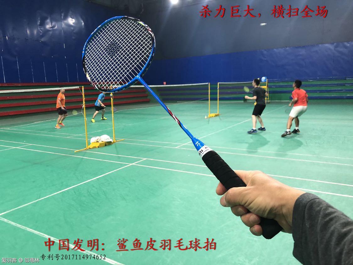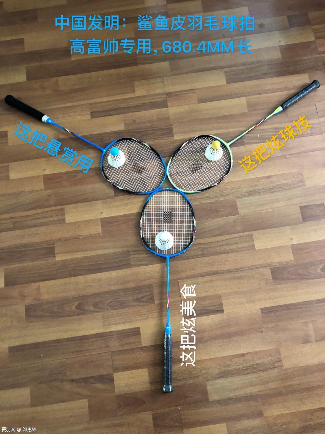 高富帅适合用680Mm长的鲨鱼皮羽毛球拍,发力更充分。