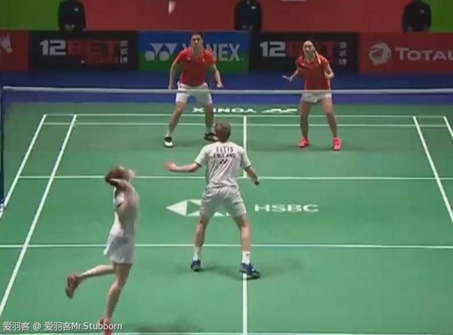男生发球在左边的时候,居然是左脚在前,这在我们这里是绝对“不专业”的动作。英国这对组合的特点是什么呢:男生快,女生猛。这大多数混双组合并不一样,尽管女生对比上不是很明显,但是我的感觉加上听现场的收音,爱丽斯的杀球明显没有邓俊文猛