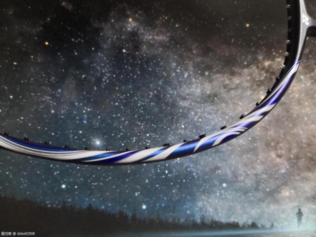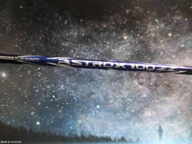 说到最后,再来看看天斧100zz的颜值。刚出来时我有被它水波蓝的配色惊艳到。实际上手之后我也觉得天斧100zz的颜值非常能打。球拍整体以藏青蓝为主色调,拍框一半是镜面烤漆,另一半是磨砂喷绘。拍杆上是波纹的图案,配上球拍的型号——天斧100zz。而在灯光下看蓝色涂装时,总有一种凝望星空的感觉,给人无限遐想。