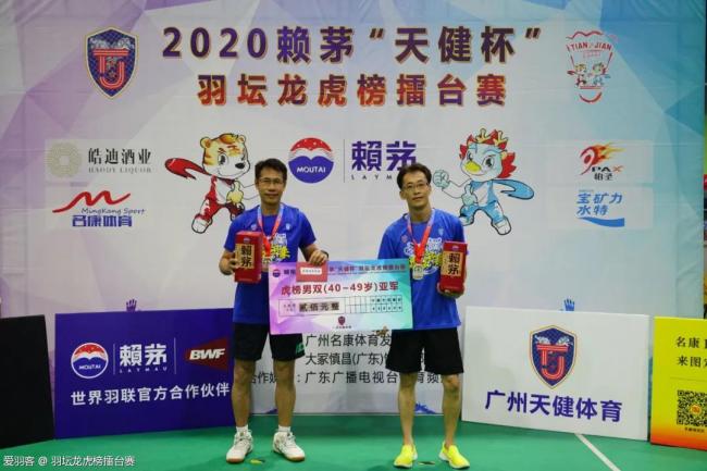 虎榜男双40-49岁组别的亚军:潘玉成、吴浪清