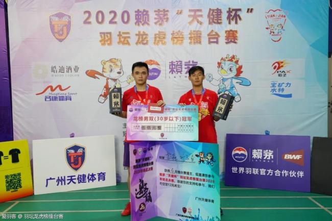 龙榜男双30岁以下组别冠军:黎森、叶子童