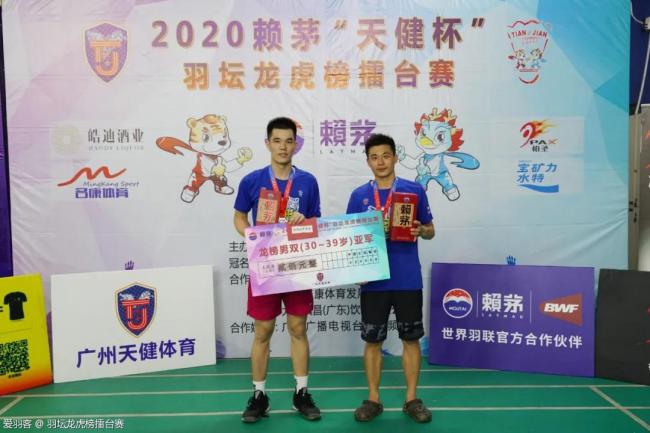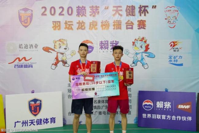 龙榜男双30岁以下组别亚军:罗佰亮、钟皓星