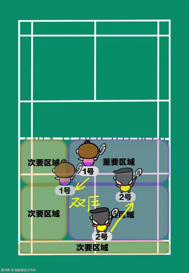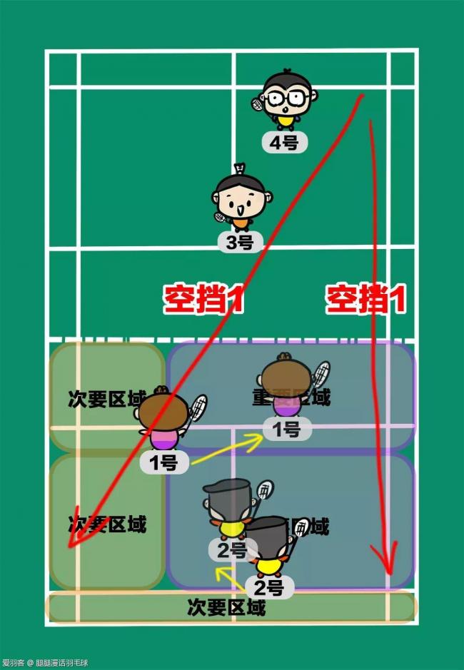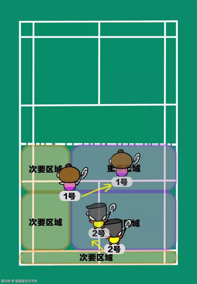 这样1、2号就从走位、站位的策略上提高了获胜的概率。不管对方出什么球,都能够自如应对~~