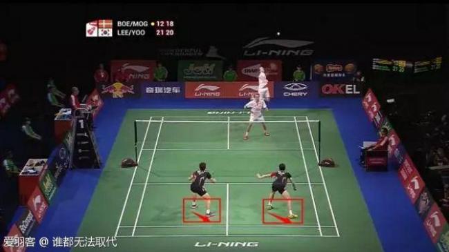 此时就要喊起来,看谁接比较有把握;或者是前场人员往下蹲点,让出位置来让后场搭档全力击球。