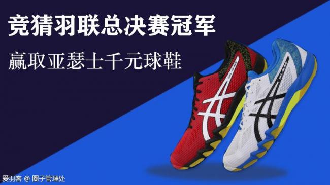 即日起参加爱羽客“竞猜2020世界羽联年终总决赛冠军,赢取亚瑟士千元球鞋!”活动,即有机会赢取5双亚瑟士千元羽毛球鞋!