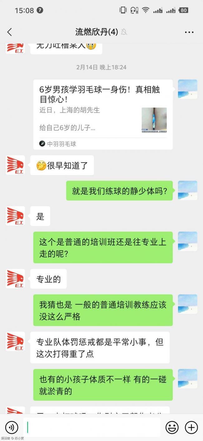 后来一看孩子培训的地址,静安少体校,正是我平常和好友每周打球练球的地方。于是问了好友,聊天记录如下: