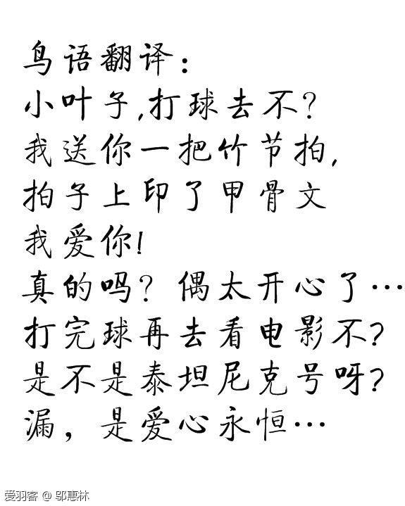 邬惠林写一首羽毛球爱情诗:鸟语翻译