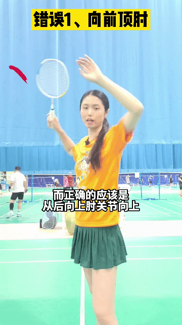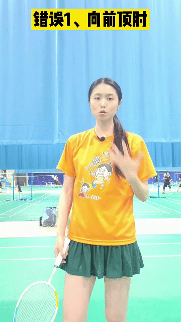 1、错误,向前顶肘:错误的是肘关节向前顶肘,从后向下向前这是错的