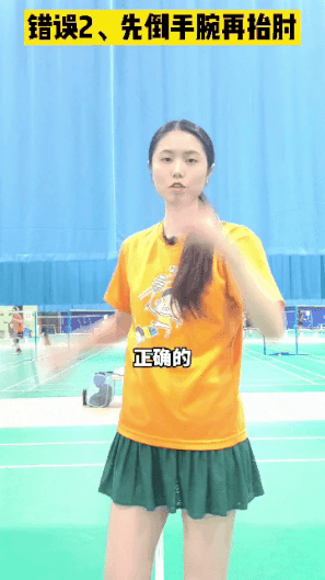 2、错误,先倒手腕再抬肘:先倒手腕再抬肘,这样你会发现你的小臂和大臂之间的夹角会太小