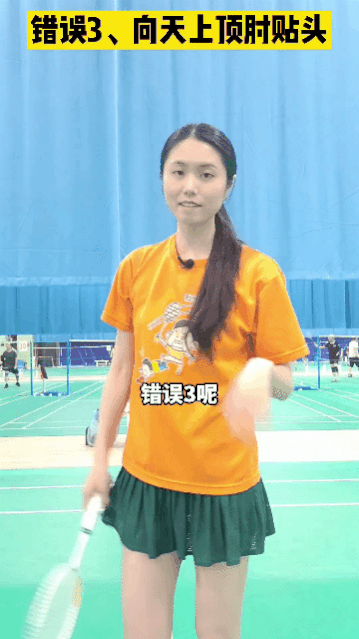 3、错误,向天上顶肘贴头:肘关节向天上顶然后贴头。这个动作在实战中是没有的,所以我们不要这样练。因为如果你这样贴头的话,你最后击打的时候,你的击球点会在你的12点钟的位置