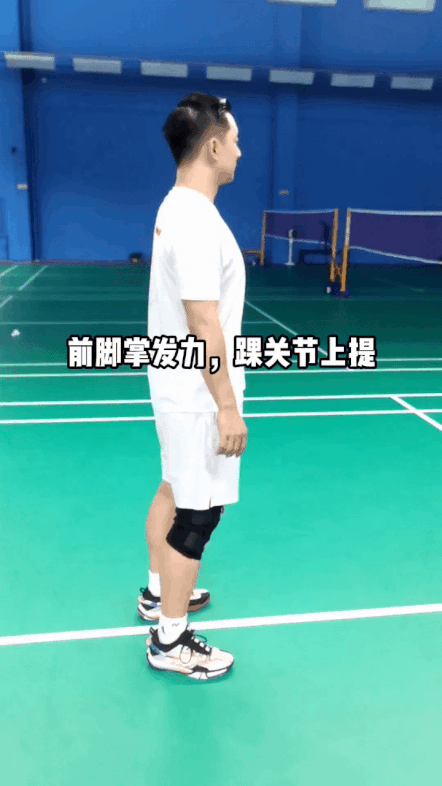 在羽毛球的步法中,启动和移动大多数时候都是采用前脚掌着地的方式移动,这就需要我们的踝关节力量支撑足够强、前脚掌足弓的发力足够好才行。这一训练可以非常好地强化这些位置的力量和柔韧性,激活你的前脚掌,让身体更熟悉这种蹬地发力的感觉和状态。