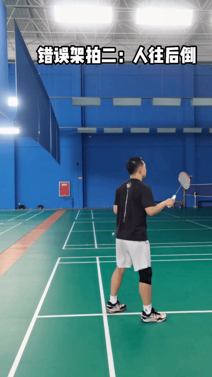 说明:我们通常在职业比赛中看到高手的后倒状态,并不是这种后倒架拍,而是后场球的侧身动作,所以如果你做成了后倒架拍,则会直接让自己陷入被动接球的状态中