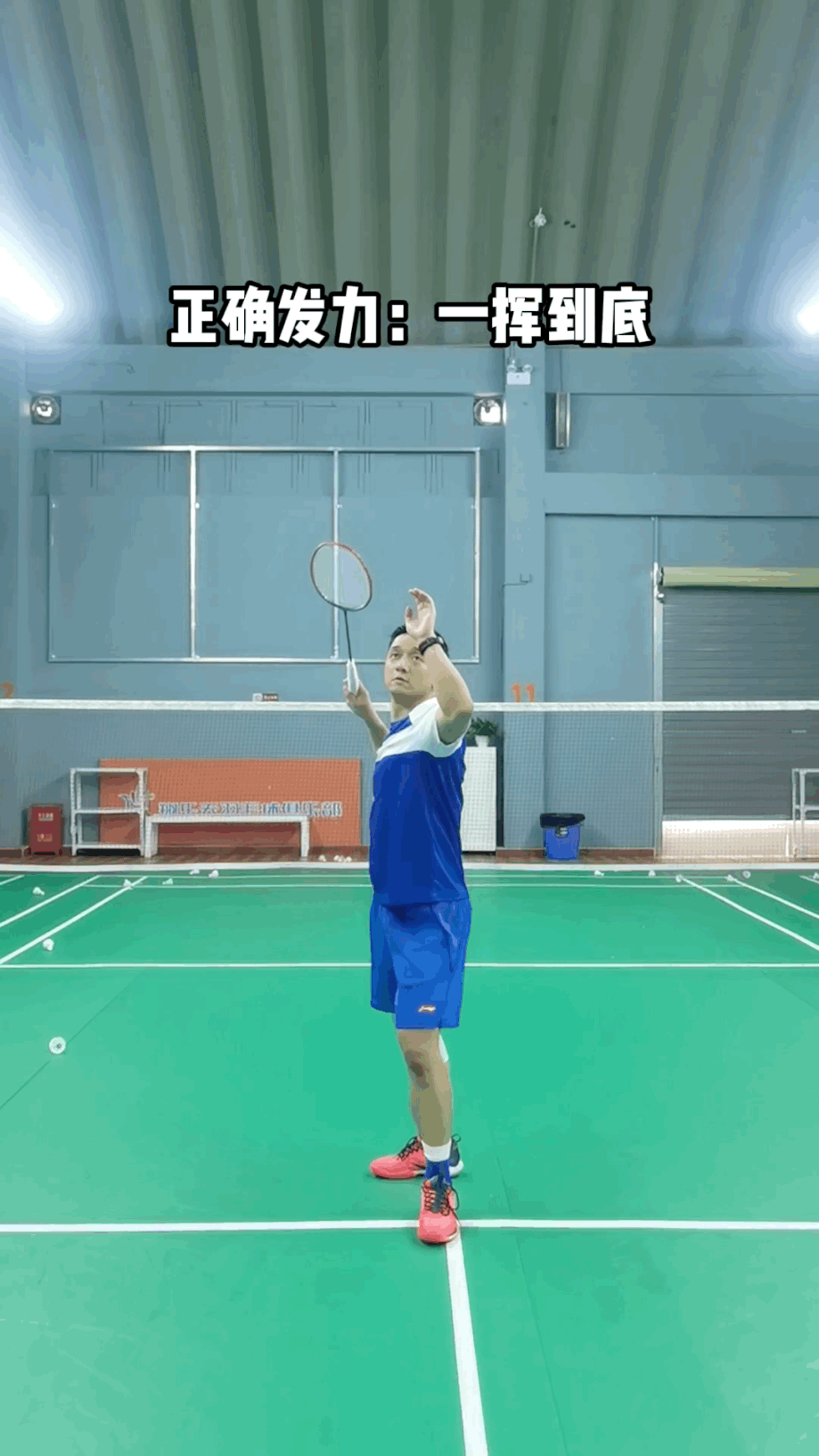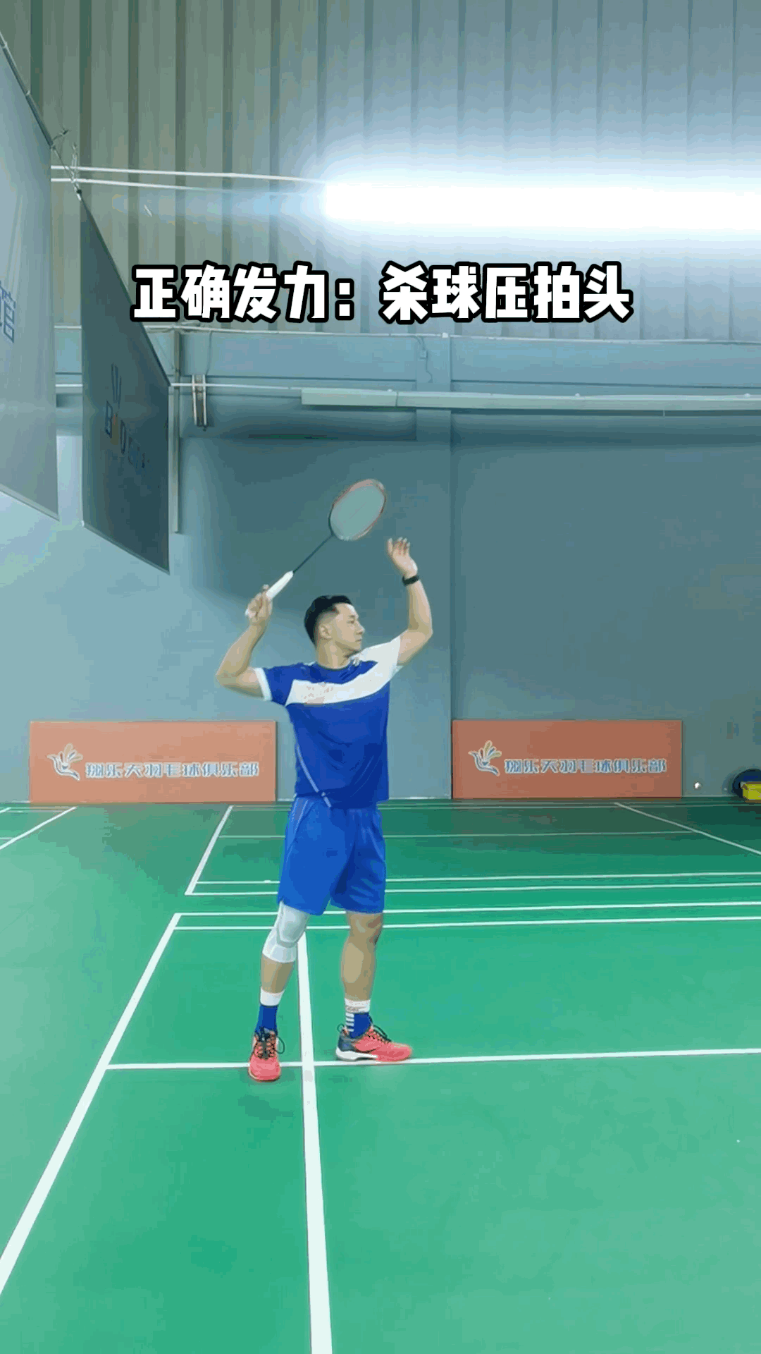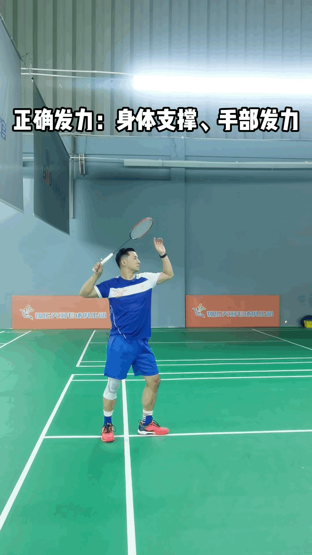 正确示范:杀球身体支撑、手部发力
