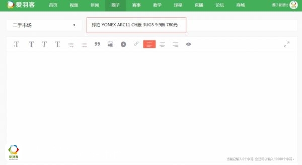1.PC进入爱羽客羽毛球网首页,找到圈子入口按钮,点击进入,选择二手市场小组,发帖。