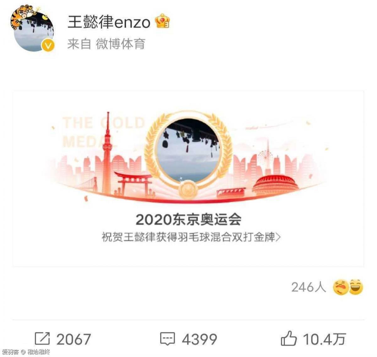 谷爱凌这种顶流体育明星就不拿出来硬磕了,单从奥运会夺冠后微博评论和点赞数量上来分析,同是奥运冠军的王懿律关注度甚至远不如非热门项目的运动员高亭宇和徐梦桃,百思不得其解!民间普及率如此之高的羽毛球何以在流量时代变得这么没有存在感?