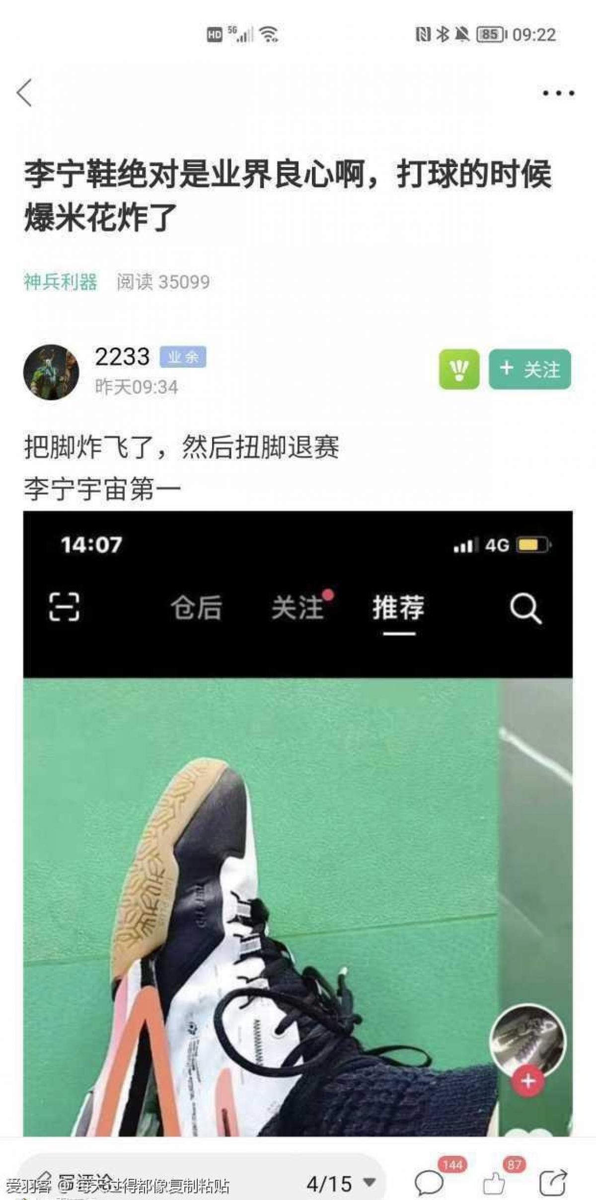 李宁作为三大厂之一,存在产品质量不过关的事实,贴地飞行和战戟出现过发泡粘合不好的质量问题,而且价格不菲,这该骂!