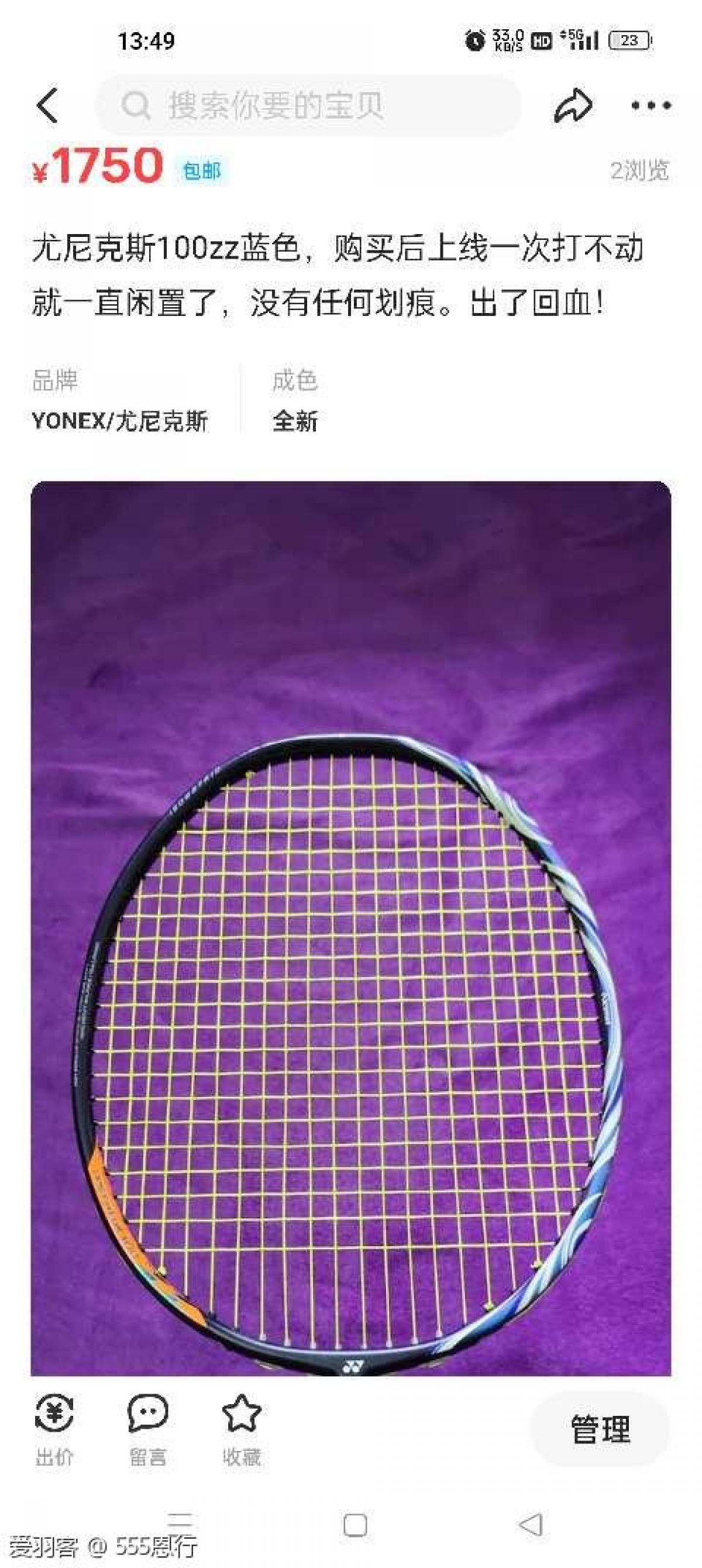 尤尼克斯100zz蓝色,购买后上线一次打不动就一直闲置了,没有任何划痕。出了回血!