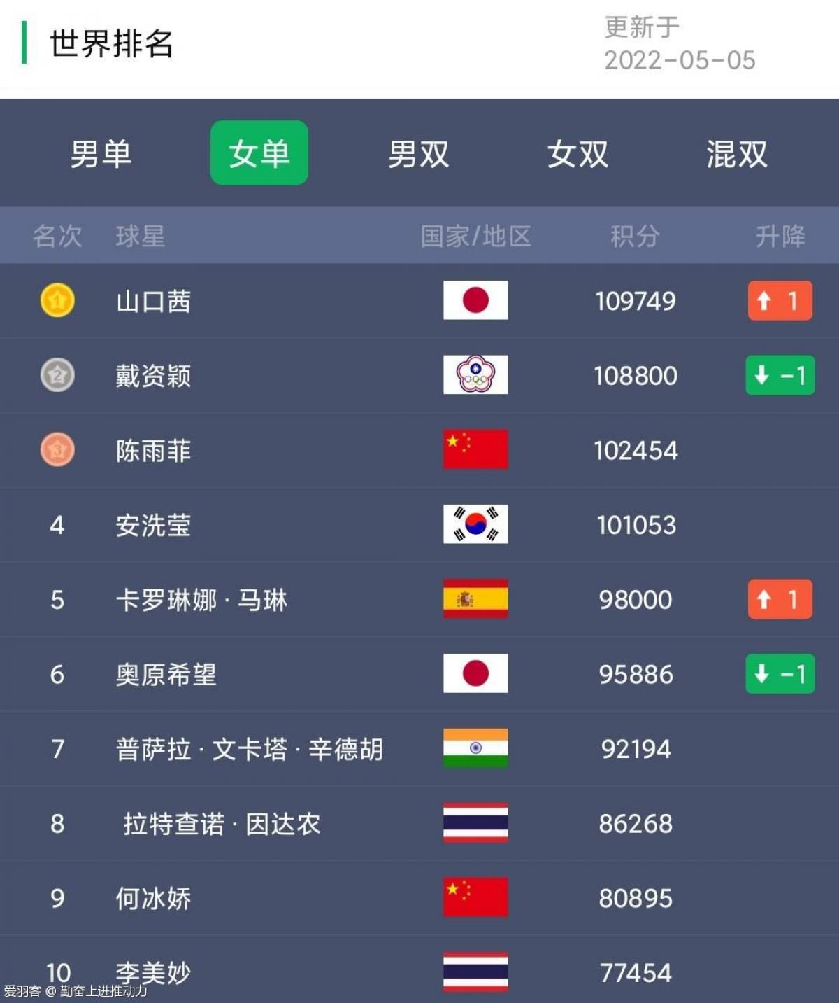 以上就是我认为世界羽毛球男单的格局,下面来简单看一下女单的情况。