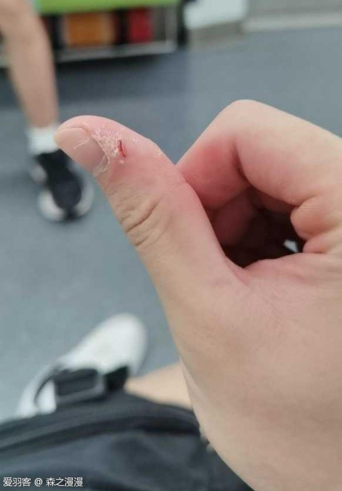 为啥有时候会磨大拇指阿,杀球的时候是手胶太细了吗,总会抠到手
