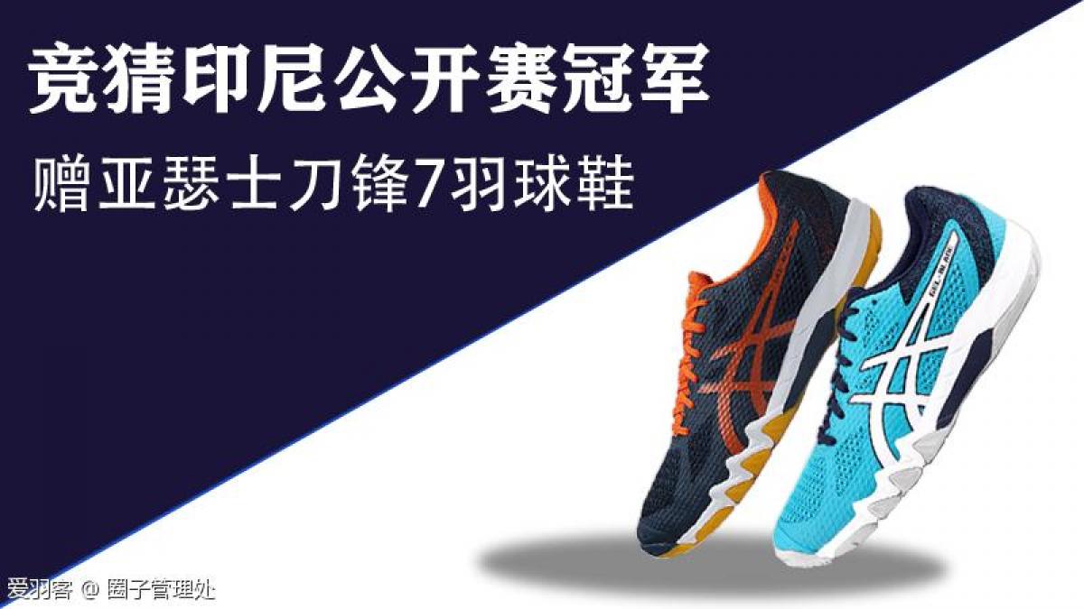 即日起参加爱羽客“竞猜印尼公开赛冠军,赢取亚瑟士球鞋!”活动,即有机会赢取亚瑟士羽毛球鞋!