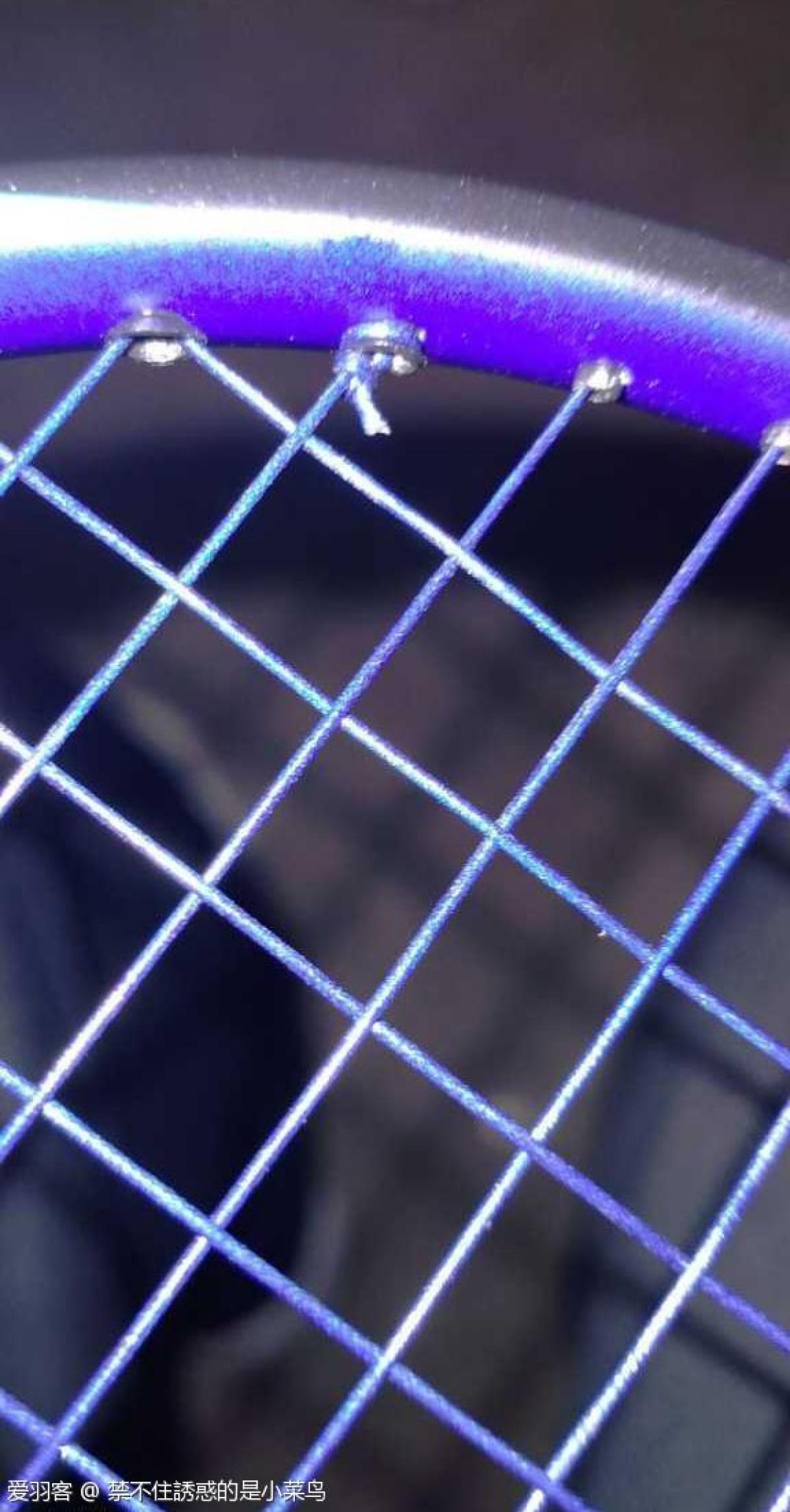 在护线管和拍框中间的缝隙里,球线转了一圈。
