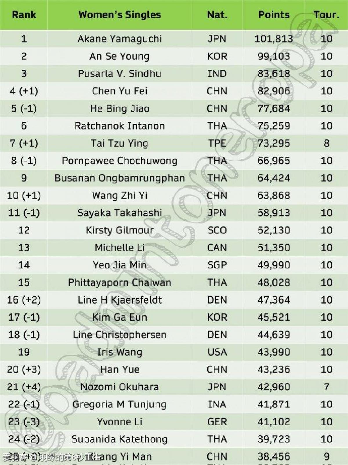 陈雨菲4,何冰娇5,王祉怡10,韩悦20,张艺曼25
