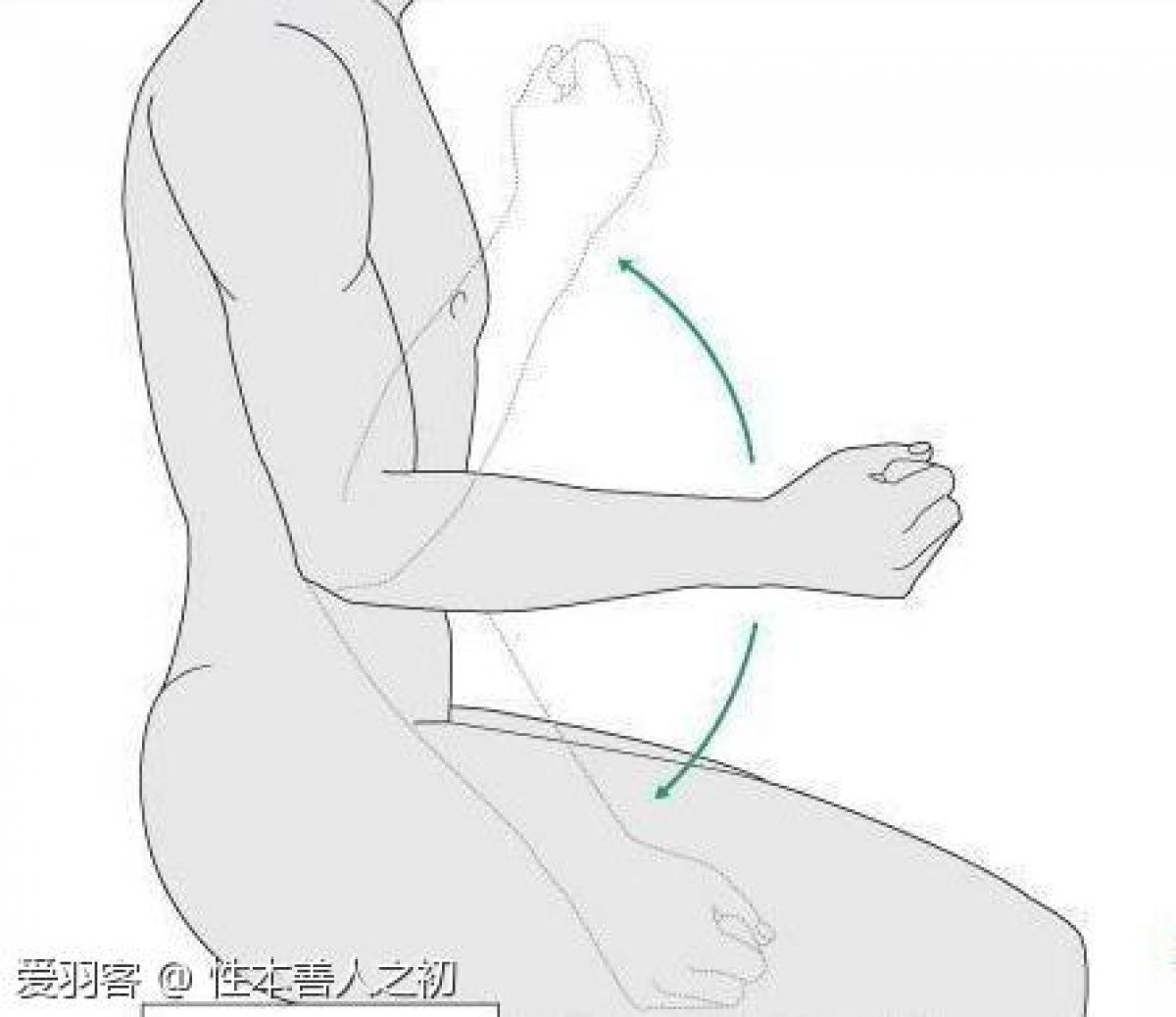 (5)前臂旋转法:患者取立位或坐位,屈肘90,掌心向上,做前臂旋前、旋后动作,反复多次。亦可握拳旋前,松手旋后。