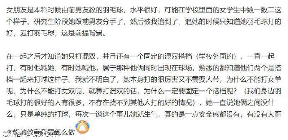 我有个朋友:女朋友爱打混双,并且有固定的混双搭档,该不该介意?
