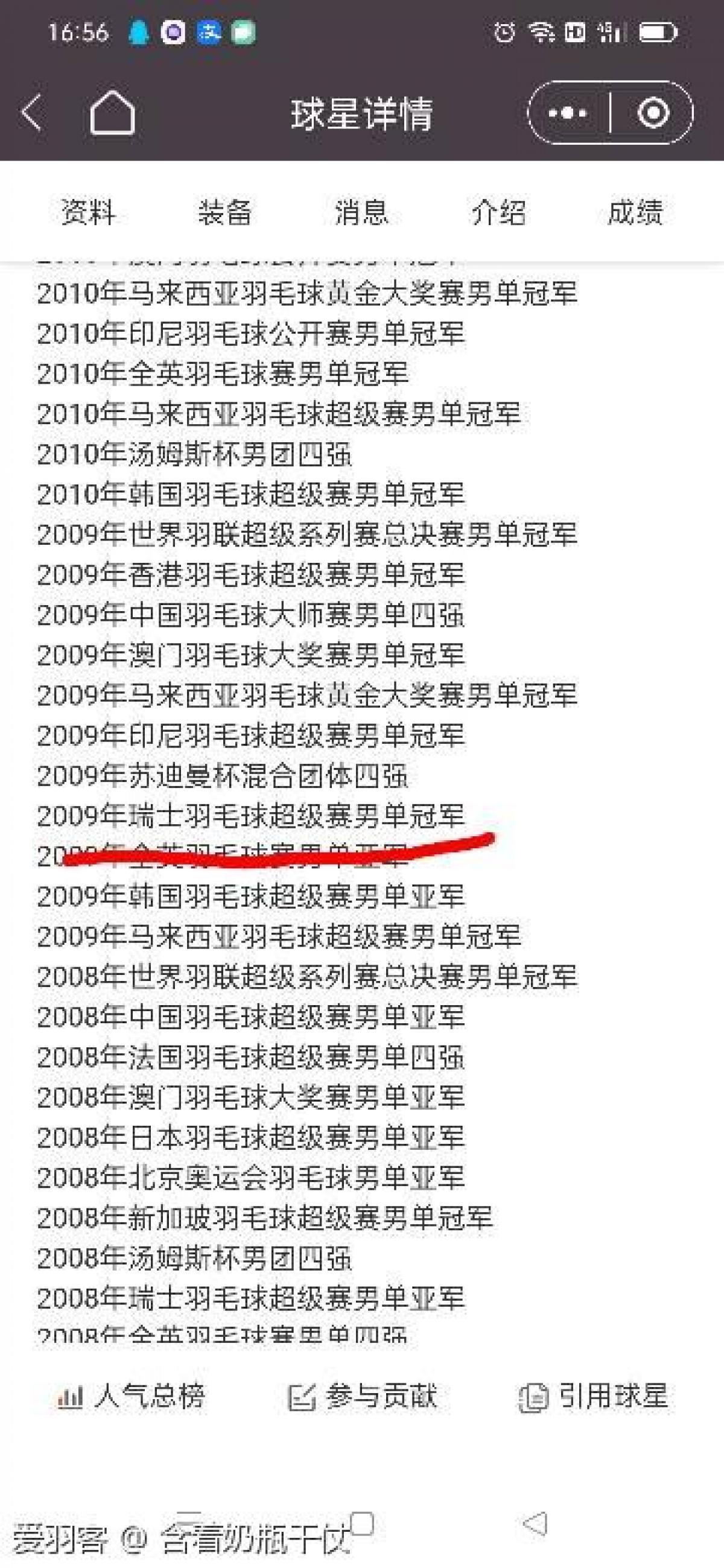 如题,如果只算那12站的话,那李宗伟貌似就拿了41个冠军(如下图)。刚好加上4个年终总决赛和一个瑞士超级赛(不是那12站中的赛事),就是46个了,不知道是不是这样算的