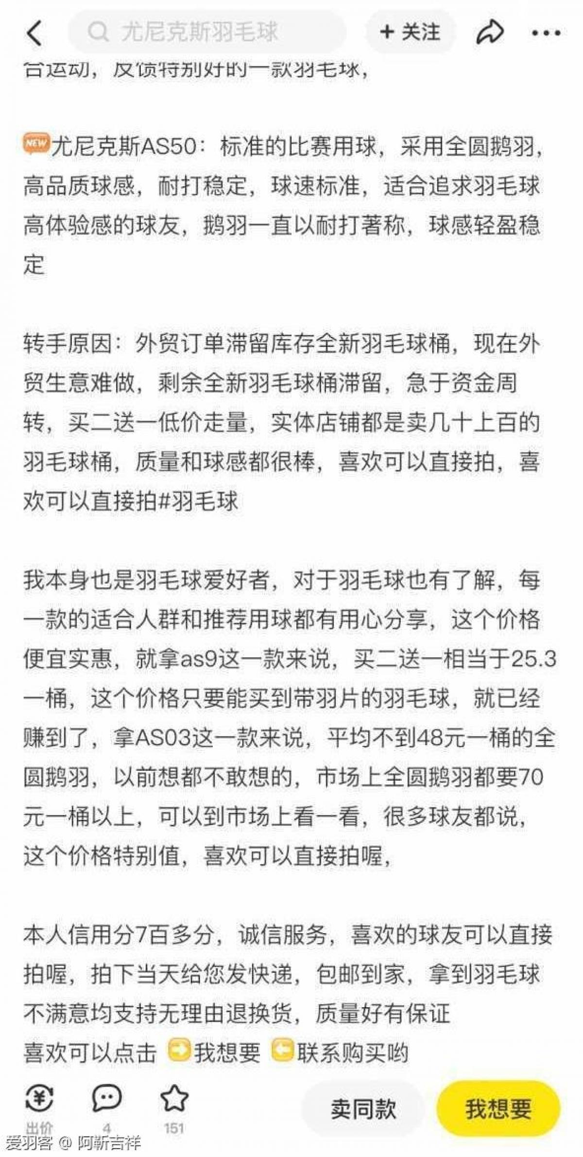 海鲜市场的yy羽毛球这么便宜,有人买过吗?
