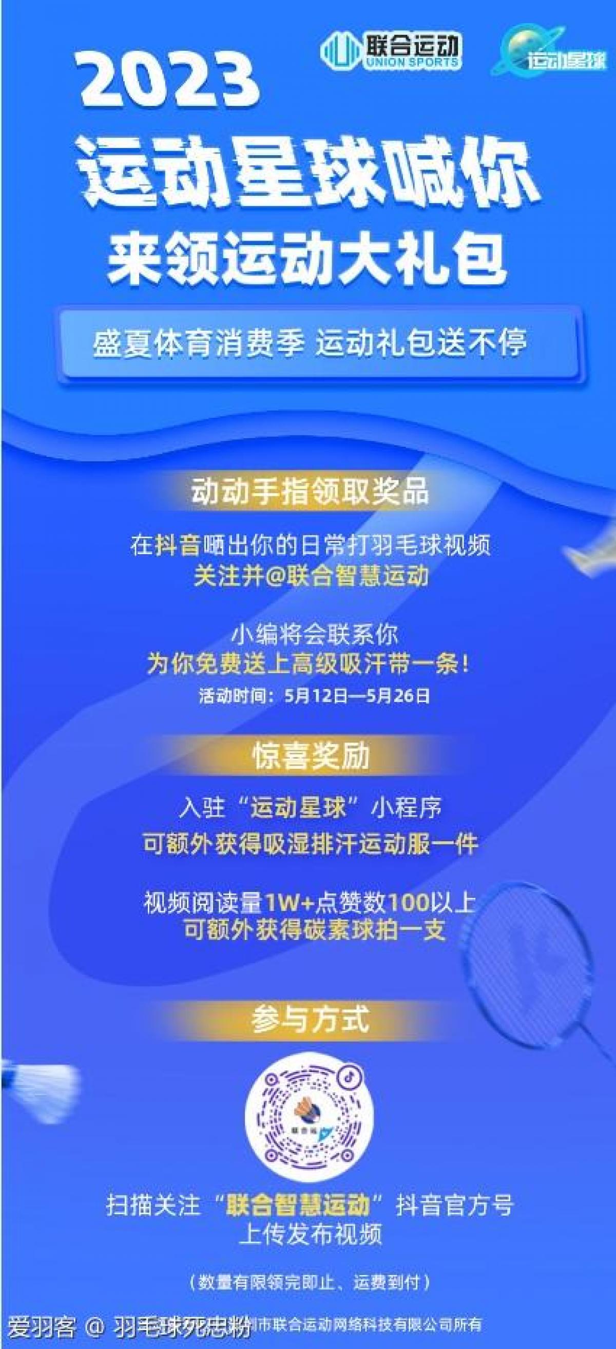 在抖音嗮出你的日常打羽毛球视频并@联合智慧运动(官方抖音)